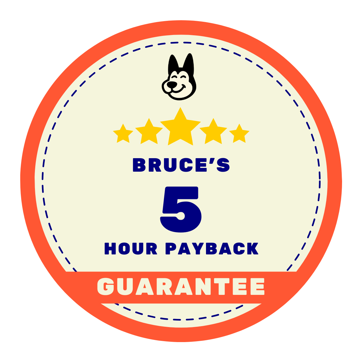 The Bruce Guarantee: We promise to find you at least 5 hours of saved time per month. If you're not satisfied we've delivered a plan to do that, you get a full refund. It's that simple.